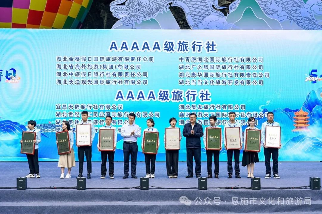 5月19日的啟動(dòng)儀式上,湖北省文化和旅游廳對(duì)新評(píng)定的5A級(jí)、4A級(jí)旅行社進(jìn)行了授牌,其中,恩施市申報(bào)的想游國際旅行社榮獲國家4A級(jí)旅行社。為有效地傳播和弘揚(yáng)湖北豐富的文化遺產(chǎn)和知音文化,提升湖北文化的影響力和知名度,活動(dòng)現(xiàn)場湖北省文化和旅游廳為10名獲評(píng)的“知音湖北文旅推介官”頒獎(jiǎng),恩施紫路旅行社向紅新被授予了“知音湖北文旅推介官”榮譽(yù)稱號(hào)。