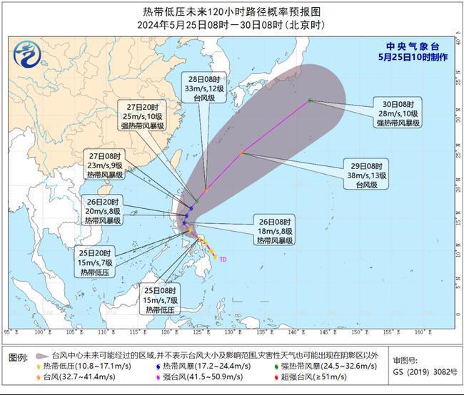 預(yù)計(jì),低壓中心將以每小時(shí)15-20公里的速度向西北方向移動(dòng),強(qiáng)度緩慢增強(qiáng),將于未來(lái)24小時(shí)內(nèi)加強(qiáng)為今年第1號(hào)臺(tái)風(fēng),26-27日將在菲律賓呂宋島東部海面逐漸轉(zhuǎn)向東北方向移動(dòng)。