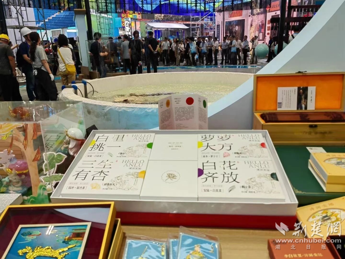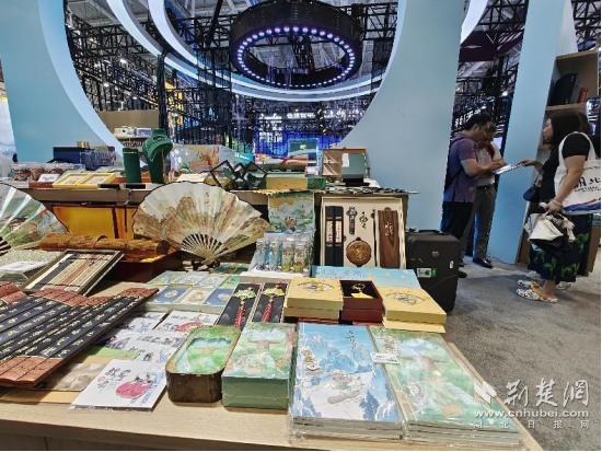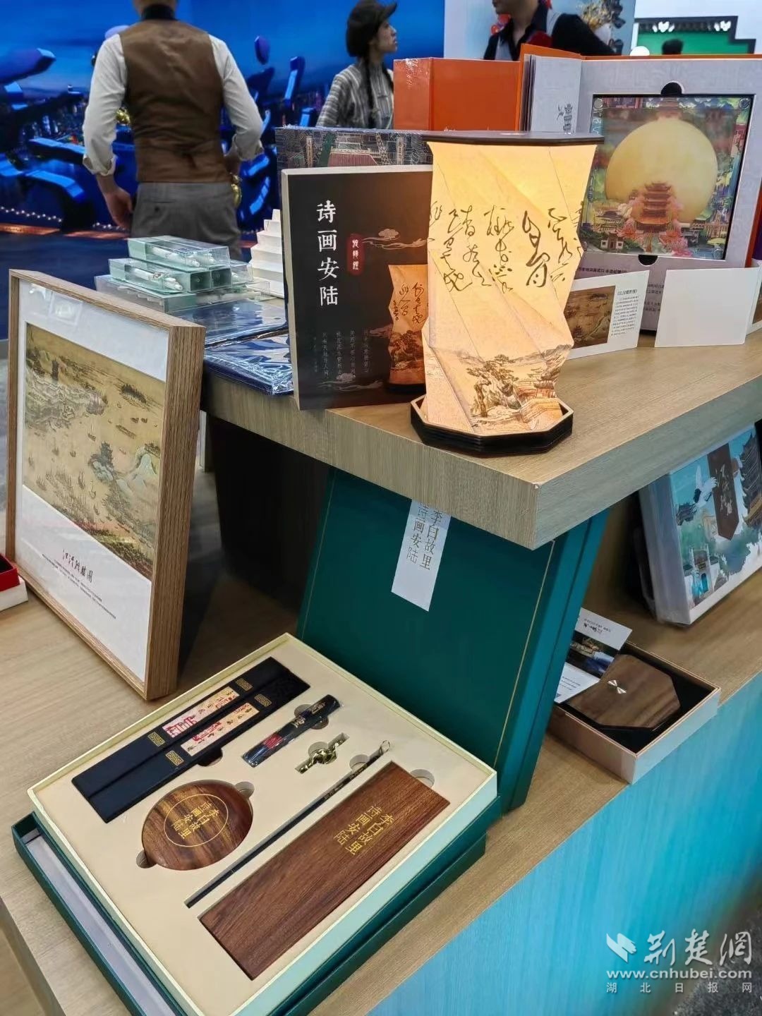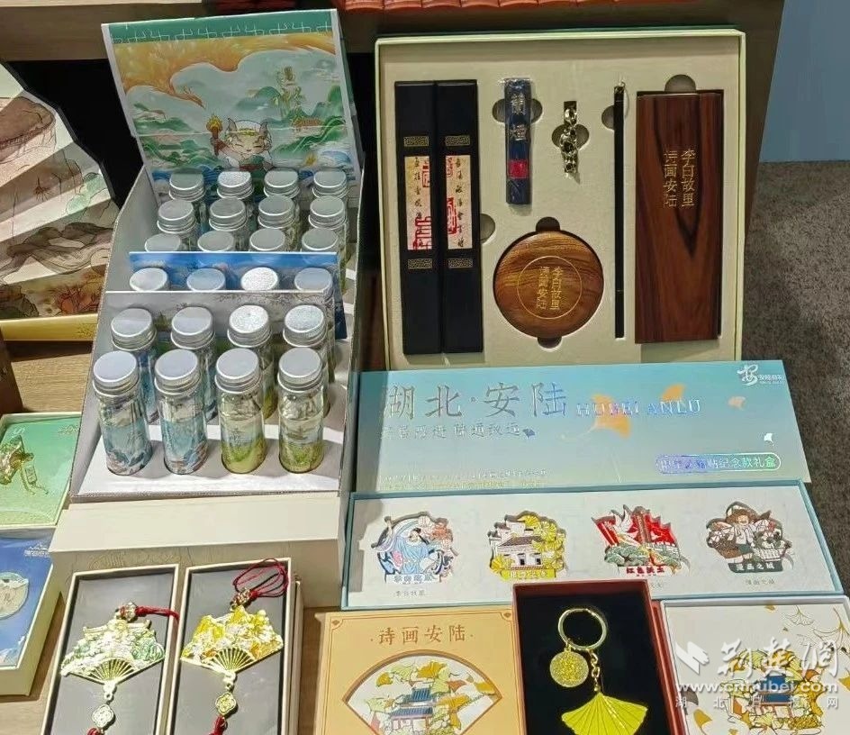在文博會(huì)湖北展區(qū)里,來自安陸的文創(chuàng)飾品光彩奪目。李白詩詞文房套裝和銀杏書簽,華美典雅,頗為驚艷。