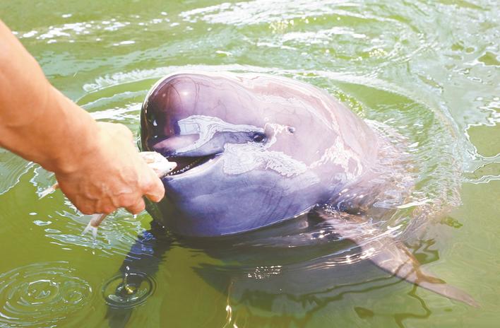 人工喂養(yǎng)長(zhǎng)江江豚。