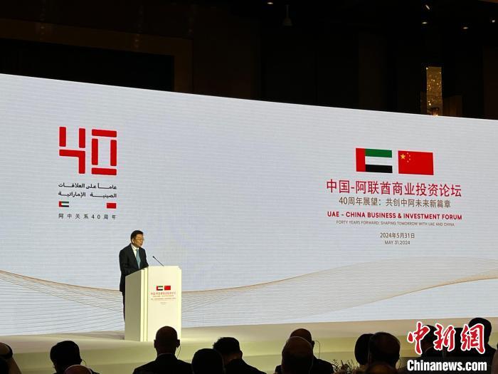 5月31日,中國-阿聯(lián)酋商業(yè)投資論壇在北京舉行。圖為中國商務(wù)部副部長兼國際貿(mào)易談判副代表凌激在開幕式上致辭。中新網(wǎng)記者 馬德林 攝