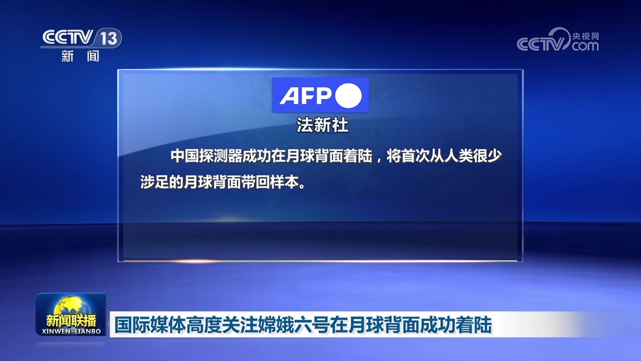 央視網消息(新聞聯(lián)播):國際媒體高度關注嫦娥六號今天(6月2日)在月球背面成功著陸。