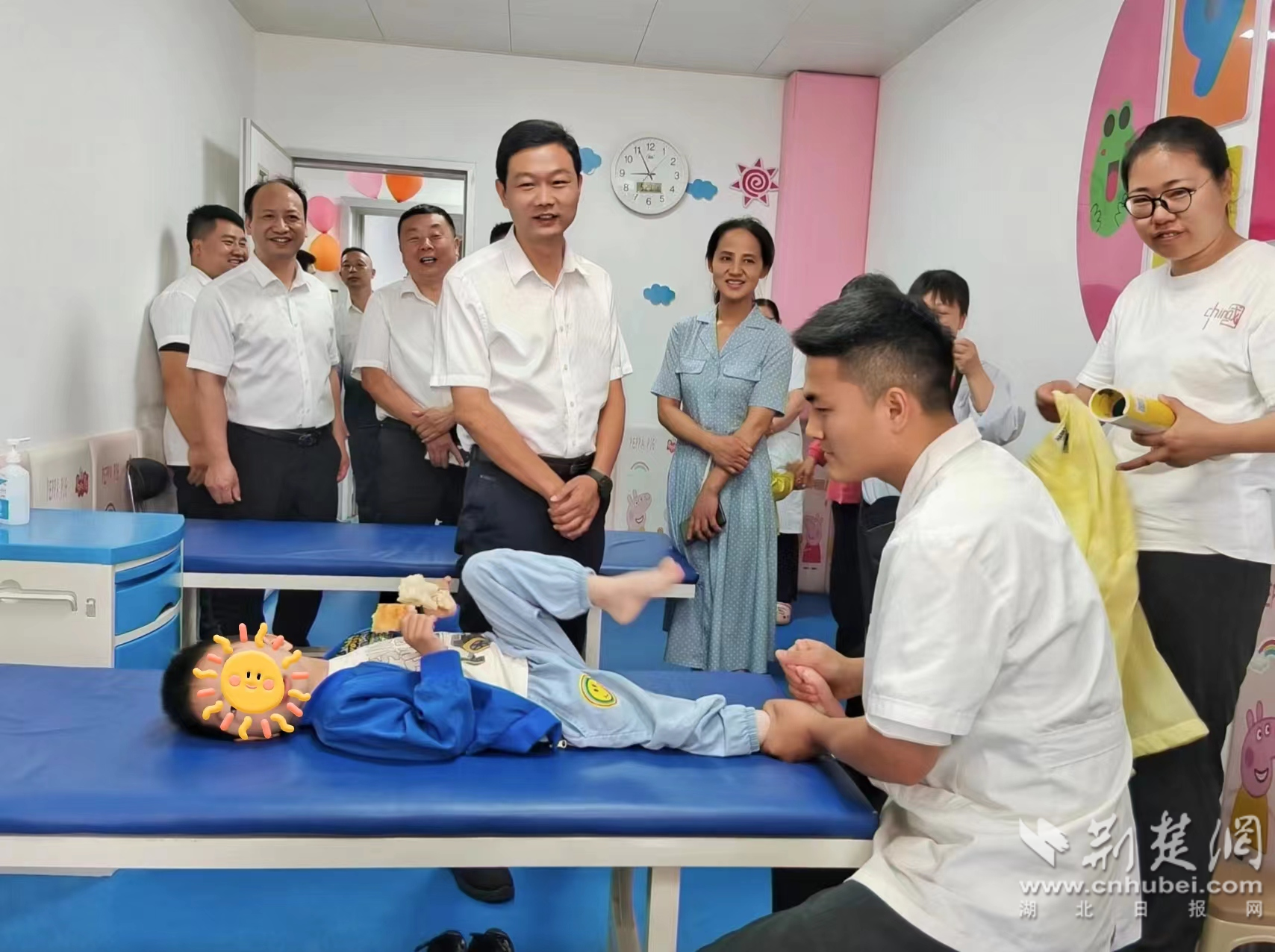 在云夢縣婦幼保健院,院方負責人介紹了醫(yī)院兒童康復工作總體情況,隨后,劉虎一行來到康復訓練室,與康復兒童及家長進行了深入交流。腦癱兒童張某媽媽感激地說:“感謝黨和政府以及社會各界的關(guān)心幫助,讓我的孩子能夠在家門口接受良好的康復訓練,減輕了我的很多負擔?!?/p>