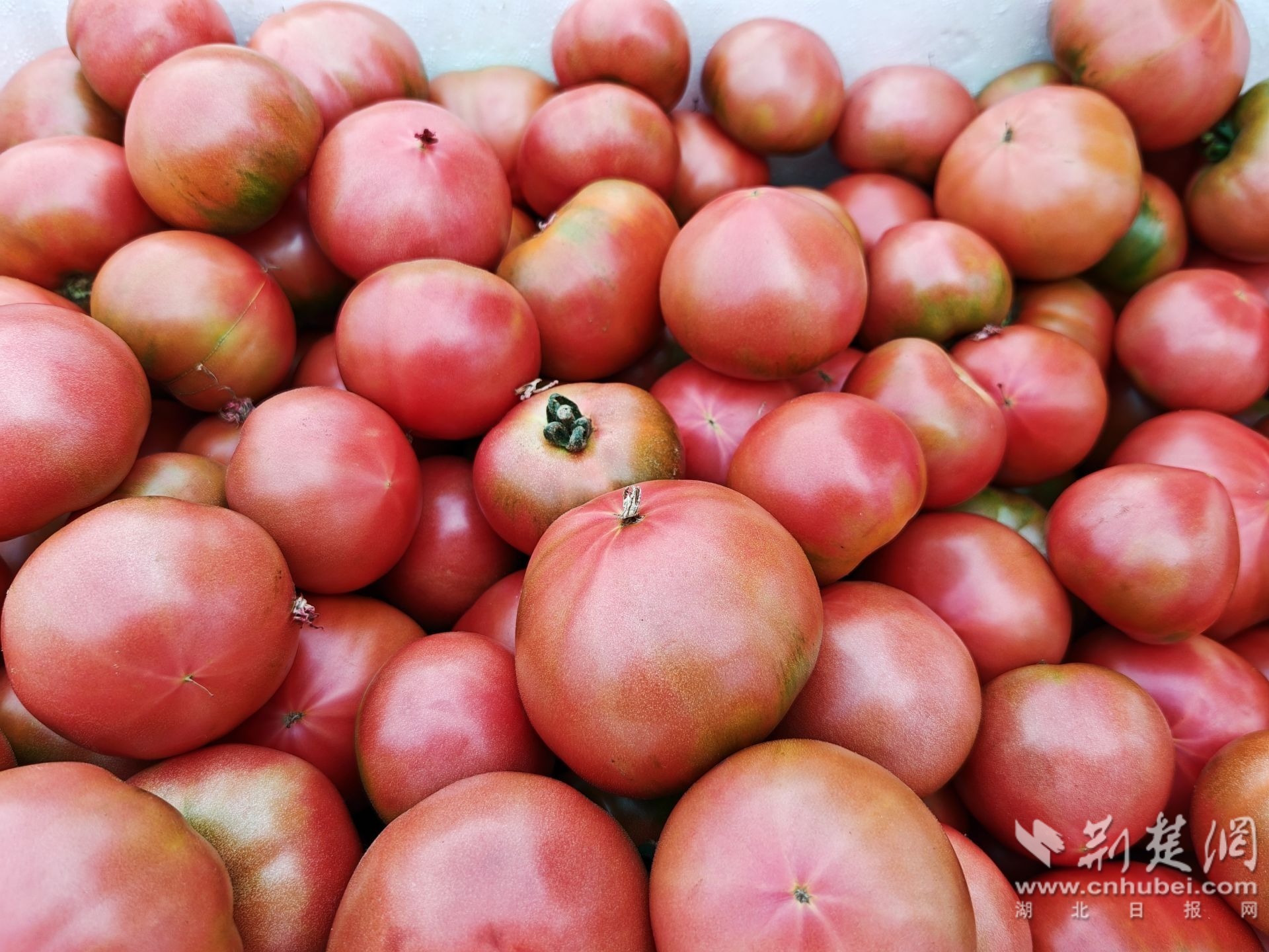 荊楚網(wǎng)(湖北日?qǐng)?bào)網(wǎng))訊(通訊員 陳保忠 吳沖)5月31日,孝感市云夢(mèng)縣隔蒲潭鎮(zhèn)新馬村的水果型草莓番茄喜獲豐收。這種水果型番茄口感好,營(yíng)養(yǎng)豐富,深受消費(fèi)者喜愛。