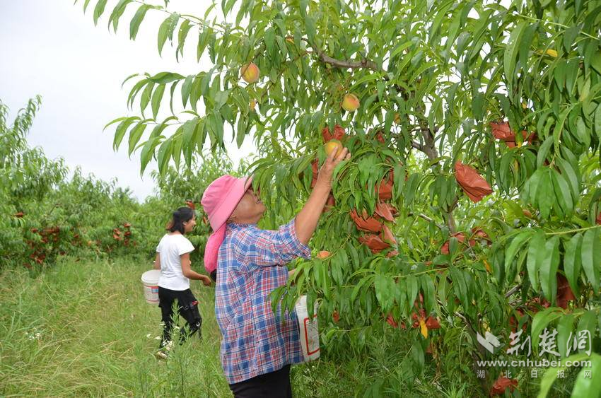 6月2日,走進(jìn)黃桃采摘園,只見(jiàn)漫山遍野的黃桃樹(shù)郁郁蔥蔥,一棵棵黃桃樹(shù)枝上掛滿(mǎn)了穿著“紙外衣”的黃桃,壓彎枝頭,采摘下來(lái),打開(kāi)套袋黃燦燦的黃桃格外誘人,讓人垂涎欲滴。游客們穿梭在桃樹(shù)中,一手拿桶,一手采摘,盡情享受著采摘的樂(lè)趣。