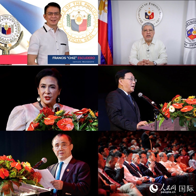 菲參議長埃斯庫德羅、外交部長馬納羅視頻致辭。菲參議員艾美代表、馬科斯總統(tǒng)中心主任伊萊莎·羅慕德爾茲,中國僑聯(lián)組織人事部部長姚林楠,菲華各界聯(lián)合會主席蔡永寧等嘉賓出席活動并致辭。人民網(wǎng)記者 樊帆攝