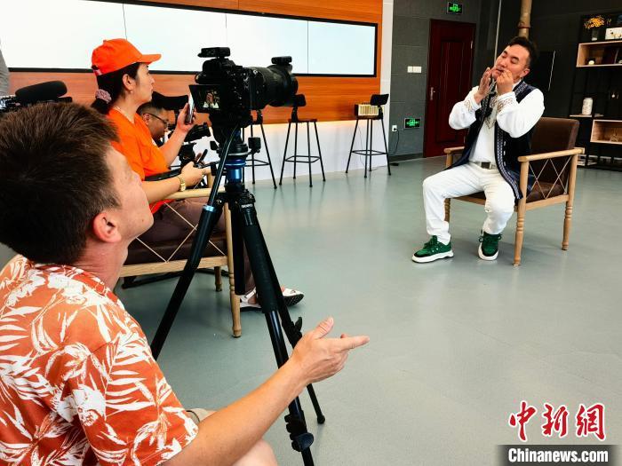 攝制組拍攝新疆青河縣獨立音樂人米蘭別克·阿合賽。古麗米娜·艾力哈孜 攝