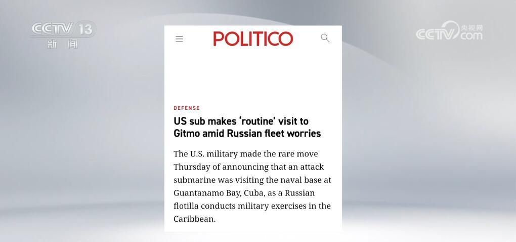 美聯(lián)社13日報(bào)道稱,在俄海軍艦艇編隊(duì)抵達(dá)加勒比海并將舉行演習(xí)的時(shí)刻,美國海軍潛艇抵達(dá)古巴的行動(dòng)是“展示武力”的舉動(dòng)。美國《政治報(bào)》13日的報(bào)道也將美國軍方此舉稱為“罕見的”行動(dòng)。