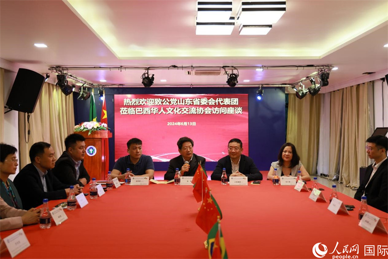 當?shù)貢r間6月13日下午,由致公黨山東省委會專職副主委兼秘書長趙濤率領的代表團到訪巴西華人文化交流協(xié)會,并與當?shù)厝A僑華人代表舉行座談。人民網(wǎng)記者 宋亦然攝