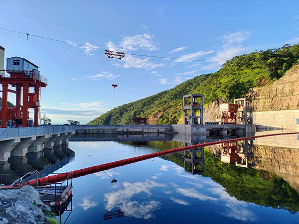 剛果(金)布桑加水電站攔河大壩泄洪。中鐵資源集團(tuán)供圖