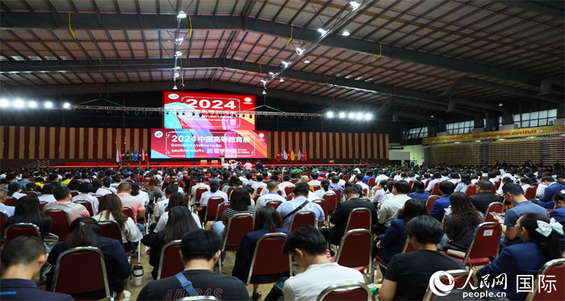 來(lái)自泰國(guó)的學(xué)生、家長(zhǎng)在教育展臺(tái)前咨詢。人民網(wǎng)記者 簡(jiǎn)承淵攝