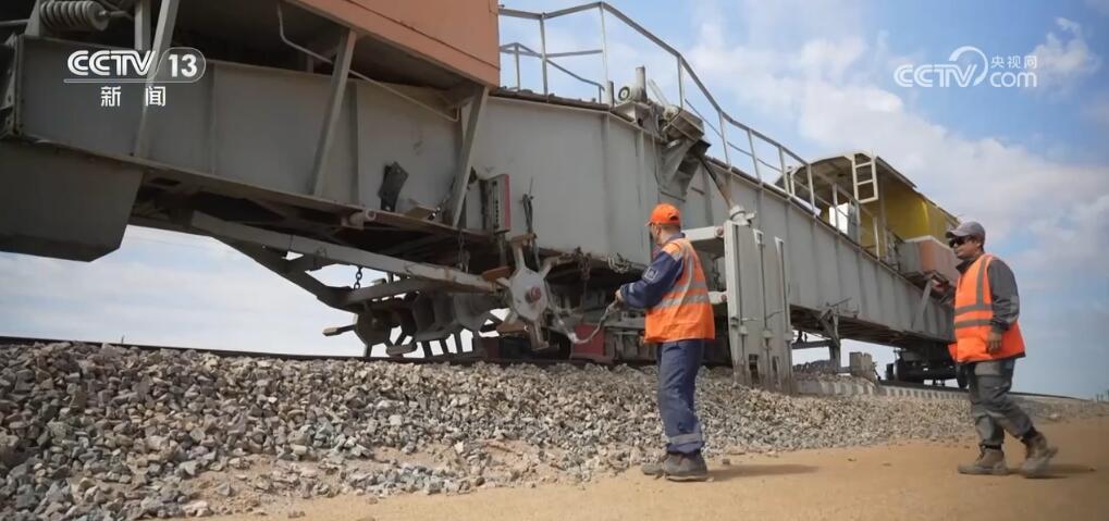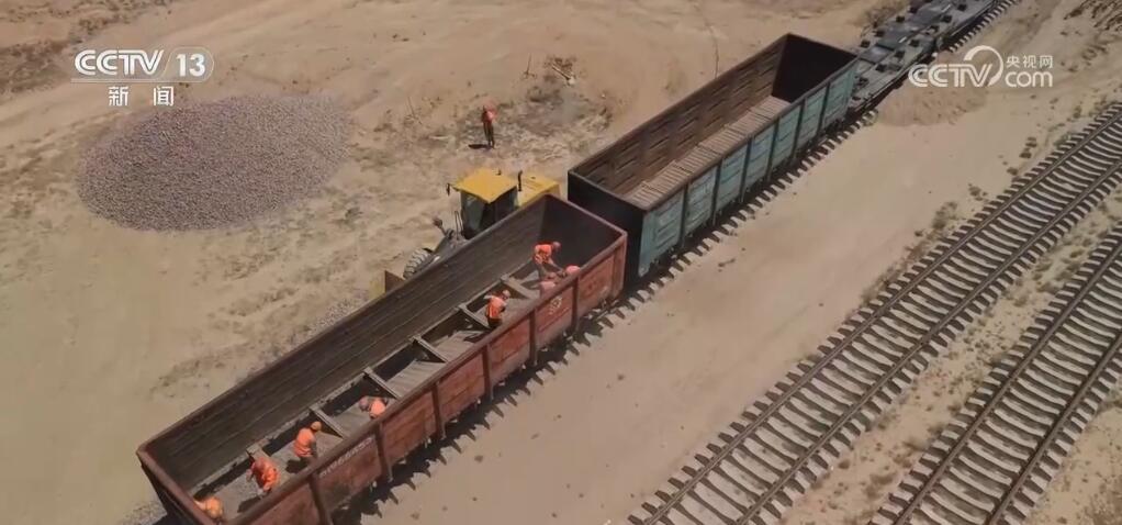 哈薩克斯坦的夏季炎熱干燥,埃爾賈薩很早就得開(kāi)始工作。在鐵軌還沒(méi)有被太陽(yáng)曬燙之前,要先進(jìn)行地基處理工作。通過(guò)使用電動(dòng)鎮(zhèn)流器,把軌道平整地鋪在碎石路上。