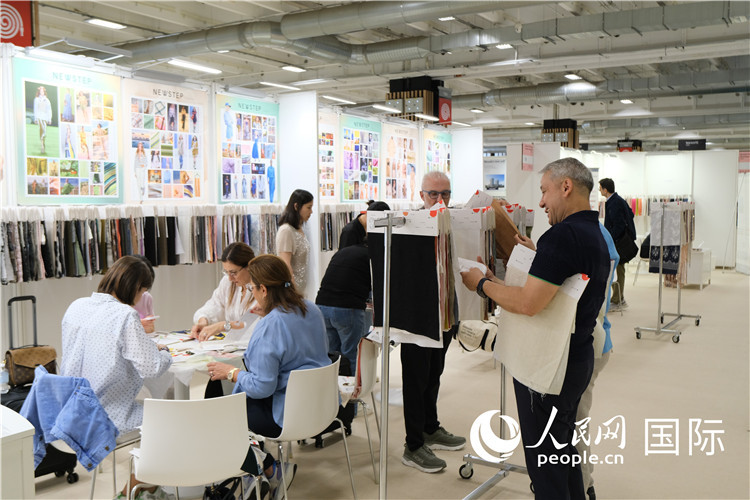 外國從業(yè)者選購中國展商面料。人民網(wǎng)記者 于超凡攝