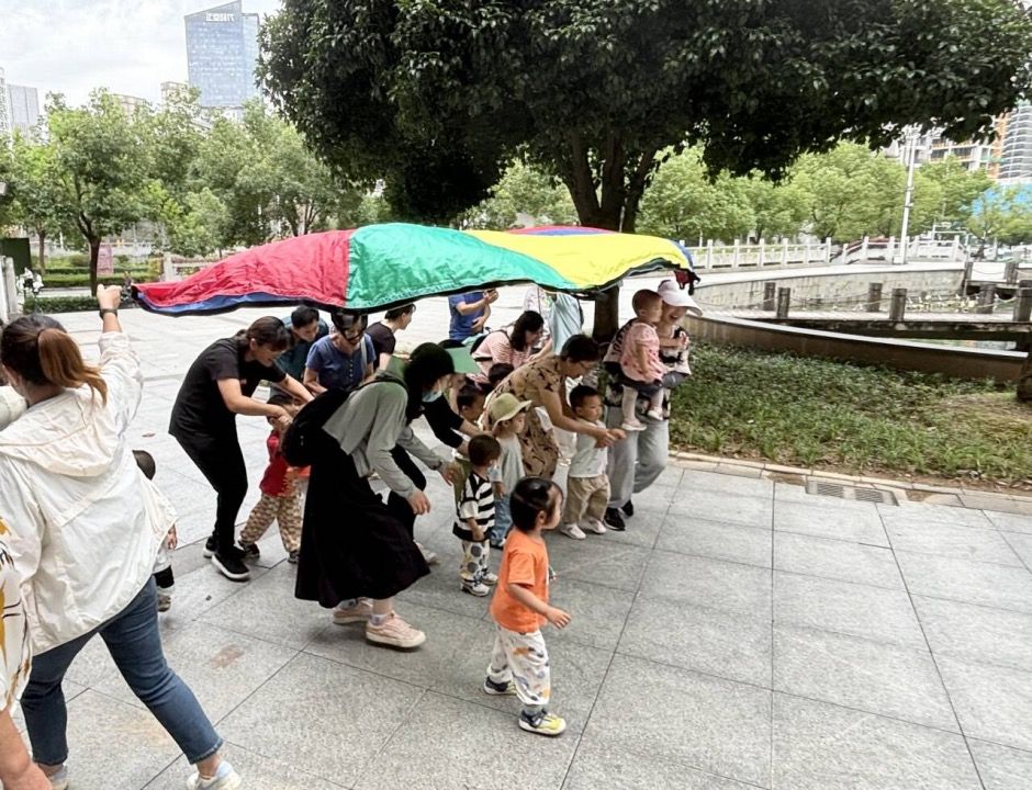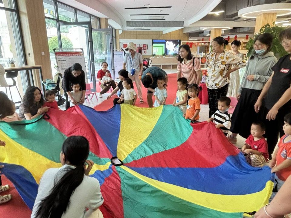 隨后的游戲環(huán)節(jié)形式多樣、內(nèi)容豐富,在指導(dǎo)老師生動(dòng)形象的演示下,小朋友們專注投入到“模式過河”“一座小橋平地起”等游戲中,孩子們認(rèn)真觀察、用心體驗(yàn),沉浸在童趣與幻想空間中。在親子游戲“捕魚達(dá)人”環(huán)節(jié),指導(dǎo)老師動(dòng)員家長參與其中,共同完成游戲任務(wù),與小朋友們一同成長互動(dòng),感受幸福與滿足。參與此次活動(dòng)的社區(qū)居民連連稱贊,表示此次活動(dòng)不僅幫助家長們建立了科學(xué)托育理念,也增進(jìn)了親子關(guān)系。