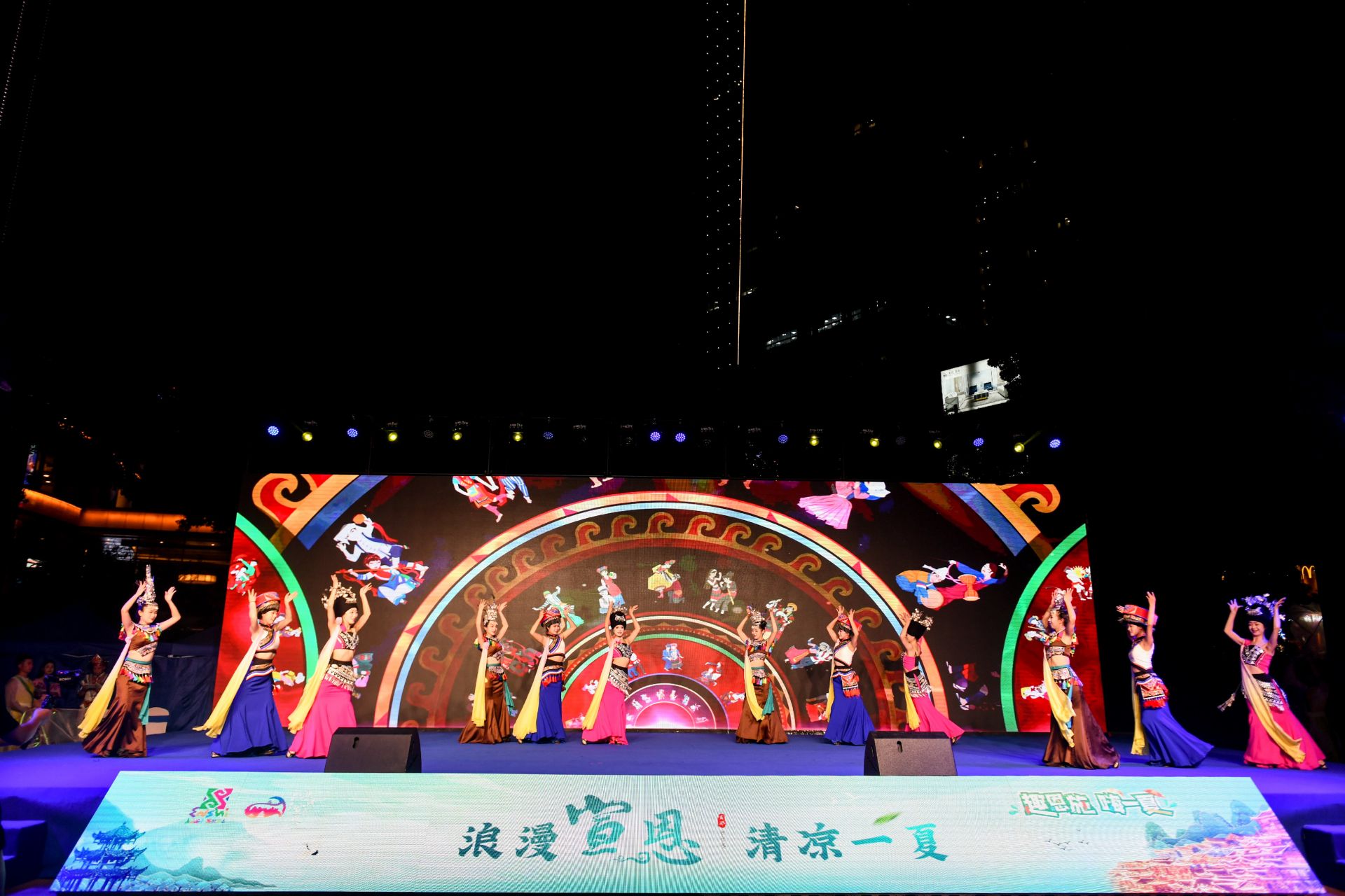 連日晴熱,武漢的夏夜,仍暑氣逼人,但當(dāng)晚的西北湖廣場(chǎng),現(xiàn)場(chǎng)觀眾的熱情絲毫不減。推介會(huì)現(xiàn)場(chǎng),推介官結(jié)合音樂(lè)、舞蹈、表演等多種藝術(shù)形式,用情景劇的方式沉浸式推介,將宣恩的玩樂(lè)攻略、民族文化、節(jié)慶賽事等文旅資源,生動(dòng)直觀地呈現(xiàn)在觀眾面前,帶給觀眾身臨其境之感。《宣恩耍?!贰蹲笥疫B廂舞豐年》《我是土家人》等多個(gè)少數(shù)民族特色的歌舞節(jié)目輪番上演,獨(dú)特的民族風(fēng)情讓觀眾提前感受到了宣恩的浪漫與熱情。