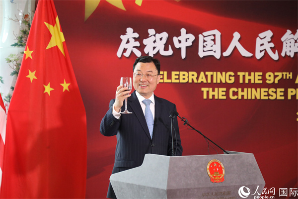 人民網(wǎng)華盛頓7月26日電 (記者李志偉)當?shù)貢r間7月25日晚,中國駐美國大使館舉行慶祝中國人民解放軍建軍97周年招待會。中國駐美國大使謝鋒夫婦、井泉公使、劉展國防武官,美政府和軍隊官員,各界友好人士,各國駐美使節(jié)和武官,華僑華人和中國駐美機構(gòu)代表300余人參加。