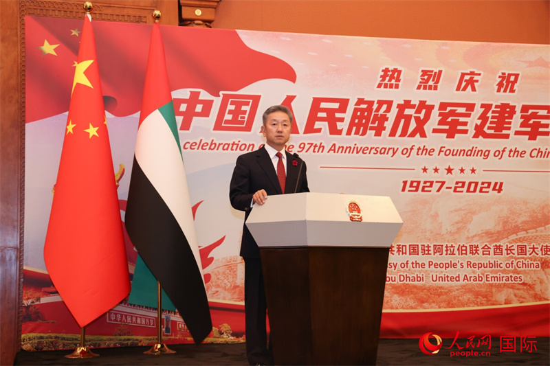 人民網(wǎng)迪拜7月28日電 (記者任皓宇)7月25日,中國駐阿聯(lián)酋大使館舉行慶祝中國人民解放軍建軍97周年招待會。中國駐阿聯(lián)酋大使張益明,阿聯(lián)酋外交部部長助理薩利姆、副總參謀長伊斯哈格少將、空軍與防空軍副司令拉希德少將、陸軍副司令穆罕默德準將等政府和軍隊代表,各國駐阿使節(jié)和武官,華僑華人和中資機構(gòu)代表約200人出席。