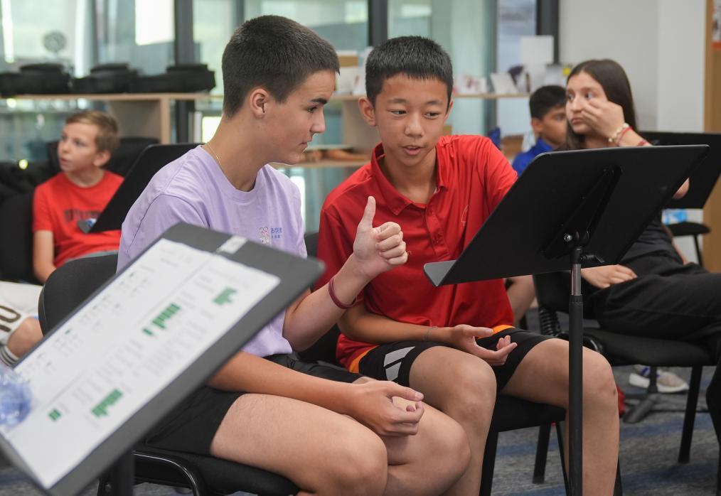 7月26日,在湖北武漢愛(ài)莎學(xué)校,中法青少年在上合唱課。新華社記者 杜子璇 攝