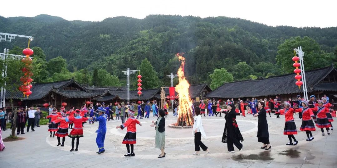 清江河畔,群山如黛,好一幅美麗的山水畫(huà)卷;吊腳樓前,院壩稻場(chǎng),好一場(chǎng)熱鬧的篝火晚會(huì)。