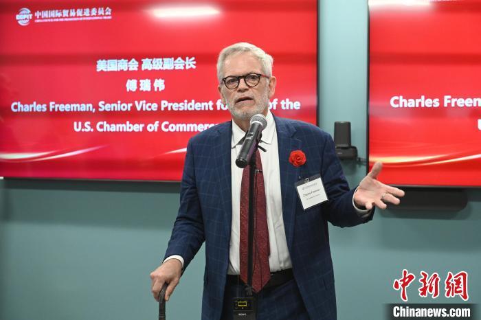 當(dāng)?shù)貢r(shí)間7月30日,中國(guó)貿(mào)促會(huì)駐美國(guó)代表處新址啟用儀式在美國(guó)首都華盛頓舉行。圖為美國(guó)商會(huì)高級(jí)副會(huì)長(zhǎng)傅瑞偉在儀式上致辭。中新社記者 陳孟統(tǒng) 攝
