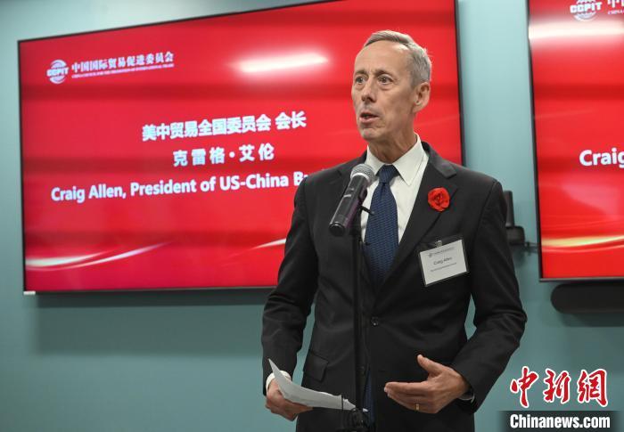 當(dāng)?shù)貢r(shí)間7月30日,中國(guó)貿(mào)促會(huì)駐美國(guó)代表處新址啟用儀式在美國(guó)首都華盛頓舉行。圖為美中貿(mào)易全國(guó)委員會(huì)會(huì)長(zhǎng)克雷格·艾倫在儀式上致辭。中新社記者 陳孟統(tǒng) 攝