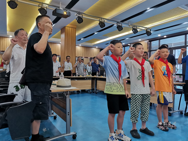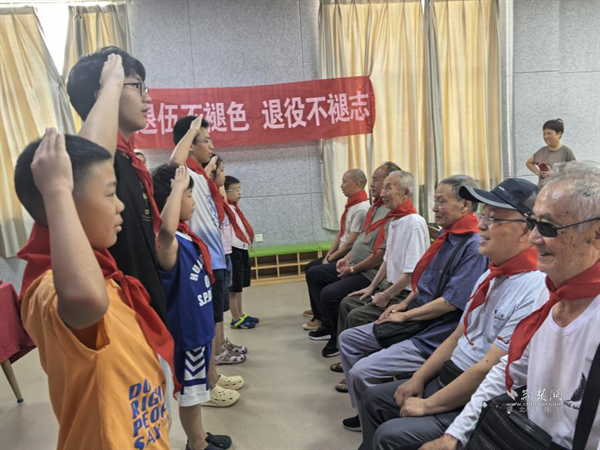 少年興則國家興,少年強則國家強。歐景苑社區(qū)開展“薪火傳承鑄軍魂,老少同堂慶八一”主題活動,青少年們與退役軍人歡聚一堂,共同觀看了紀錄片《為了和平》。少先隊員為退役老兵們系上鮮艷的紅領(lǐng)巾,并敬上隊禮。退役老兵代表戴三善分享了自己的從軍經(jīng)歷,孩子們聚精會神地聆聽著,心中升起對參軍的憧憬。