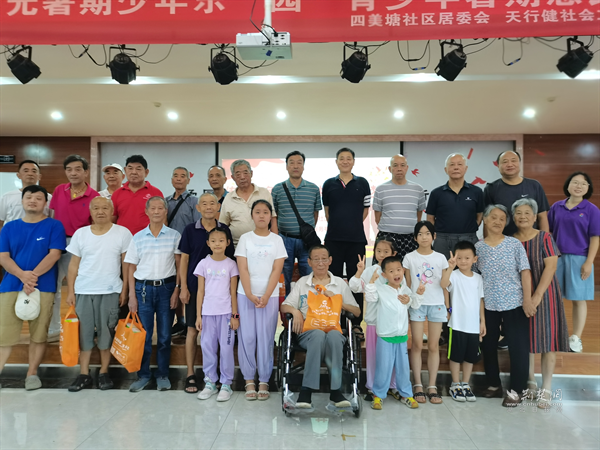 四美塘社區(qū)在楊園街眾成頤家養(yǎng)老服務中心五樓舉辦了一場別開生面的建軍節(jié)活動。楊園教育學院民樂團、管樂團的團長同時也是退伍老兵的楊寶明給現(xiàn)場參與者帶來原創(chuàng)詩歌朗誦表演。退伍軍人為孩子們講解了國防軍事相關(guān)知識,并分享了自己的參軍經(jīng)歷。互動游戲“團結(jié)大作戰(zhàn)”環(huán)節(jié)中,孩子們與退役軍人分組合作,共同完成了筷子疊杯子的挑戰(zhàn),在陣陣歡笑中,進一步增進了轄區(qū)退役軍人之間的聯(lián)系,也在孩子們心中播下了愛國擁軍的種子。