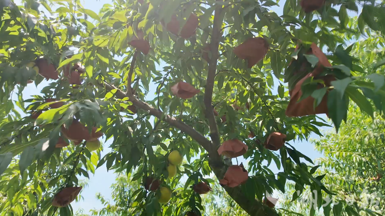 在果園里,沉甸甸的黃桃掛滿枝頭,圓潤飽滿的果實壓彎了枝條,微風(fēng)吹過,陣陣桃香撲面而來。大新鎮(zhèn)種植、培育桃苗的歷史悠久,孕育出許多優(yōu)異的桃樹品種,這里擁有獨(dú)特的沙土地和充足的光照條件,堅持人工綠色種植理念,種出來的果子有機(jī)質(zhì)含量高,口感好。