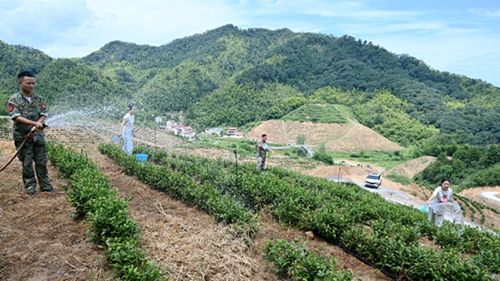 “近段時(shí)間高溫干旱,姜書記一直帶領(lǐng)我們到茶園抗旱保苗,他在部隊(duì)當(dāng)班長那種雷厲風(fēng)行的作風(fēng)一點(diǎn)沒變?!卑派酱濉皟晌睅酌嘧映蓡T由衷欽佩道。