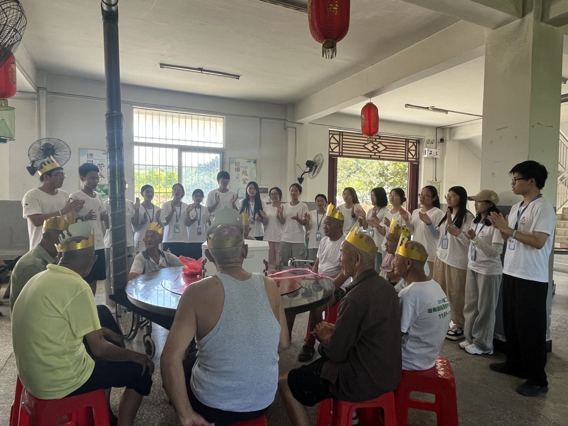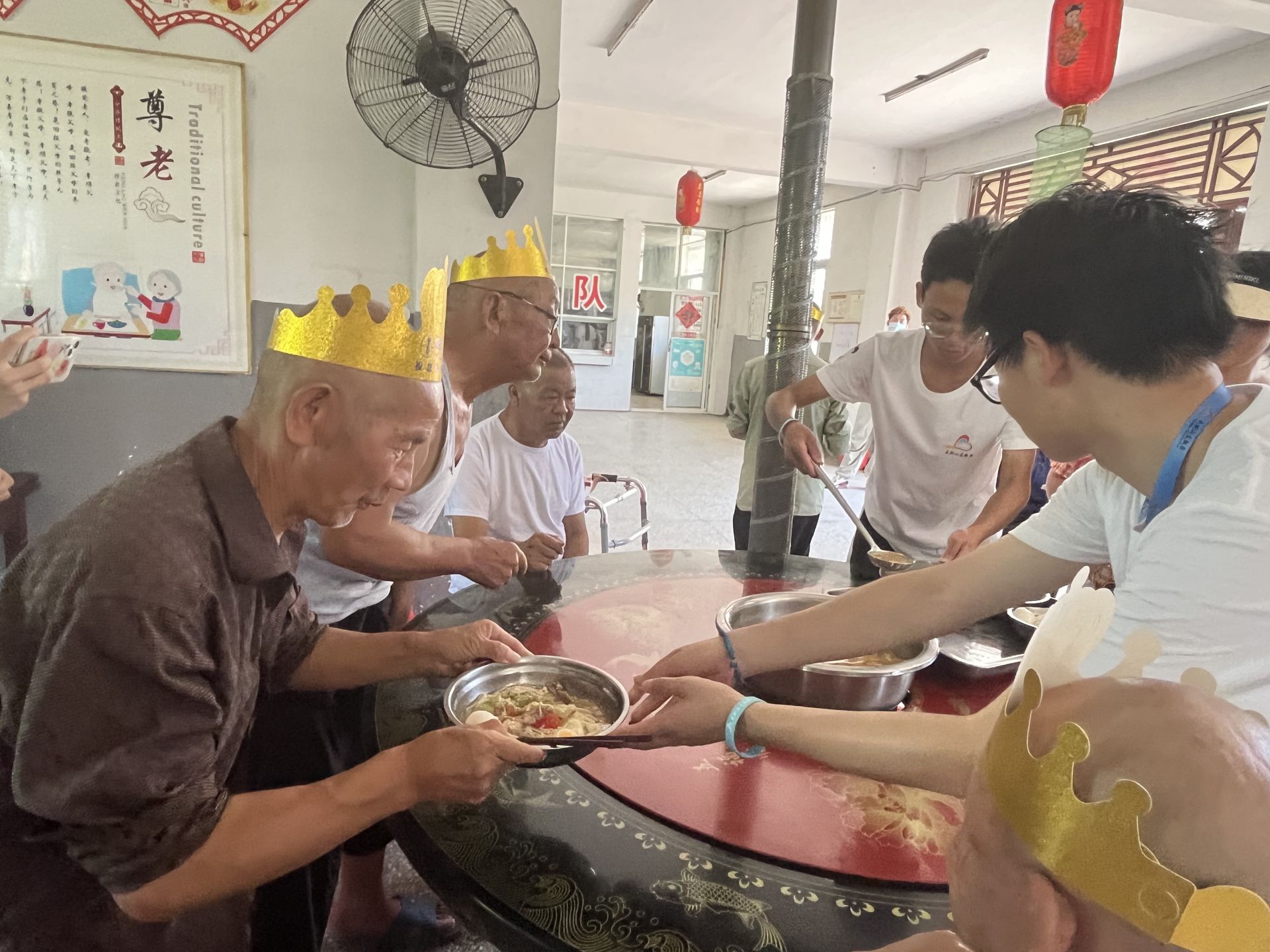 中午,大別山支教團志愿者和福利院工作人員一起配菜做菜,煮長壽面,通過唱生日祝福歌、表演手勢舞、做小游戲等方式為老人慶祝生日?!拔矣X得老年人生活很不方便也很不容易,想用自己的力量給他們帶來溫暖,希望社會多多關(guān)心關(guān)愛老人。”老家是大悟縣宣化店鎮(zhèn)的第十三屆大別山支教團成員、湖北大學研究生林青說。