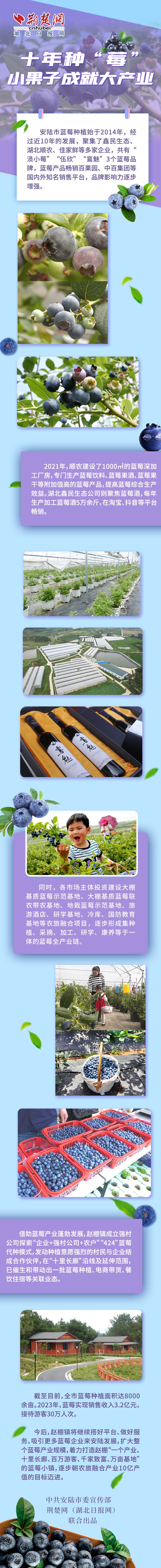 安陸市藍(lán)莓種植經(jīng)過近10年的發(fā)展,聚集了鑫民生態(tài)、湖北順農(nóng)等多家企業(yè),種植面積達(dá)8000余畝,實(shí)現(xiàn)銷售收入3.2億元,接待游客30萬人次,不斷做強(qiáng)三產(chǎn)融合產(chǎn)業(yè)鏈,打造趙棚“一個(gè)產(chǎn)業(yè)、十里長(zhǎng)廊、百萬游客、千家致富、萬畝基地”的藍(lán)莓小鎮(zhèn),朝農(nóng)旅融合產(chǎn)業(yè)10億產(chǎn)值的目標(biāo)邁進(jìn)。