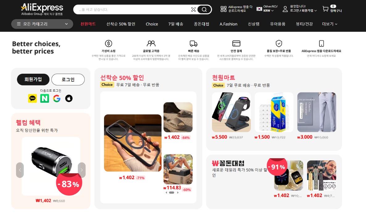 全球速賣(mài)通韓國(guó)網(wǎng)站首頁(yè)。圖源:網(wǎng)頁(yè)截圖