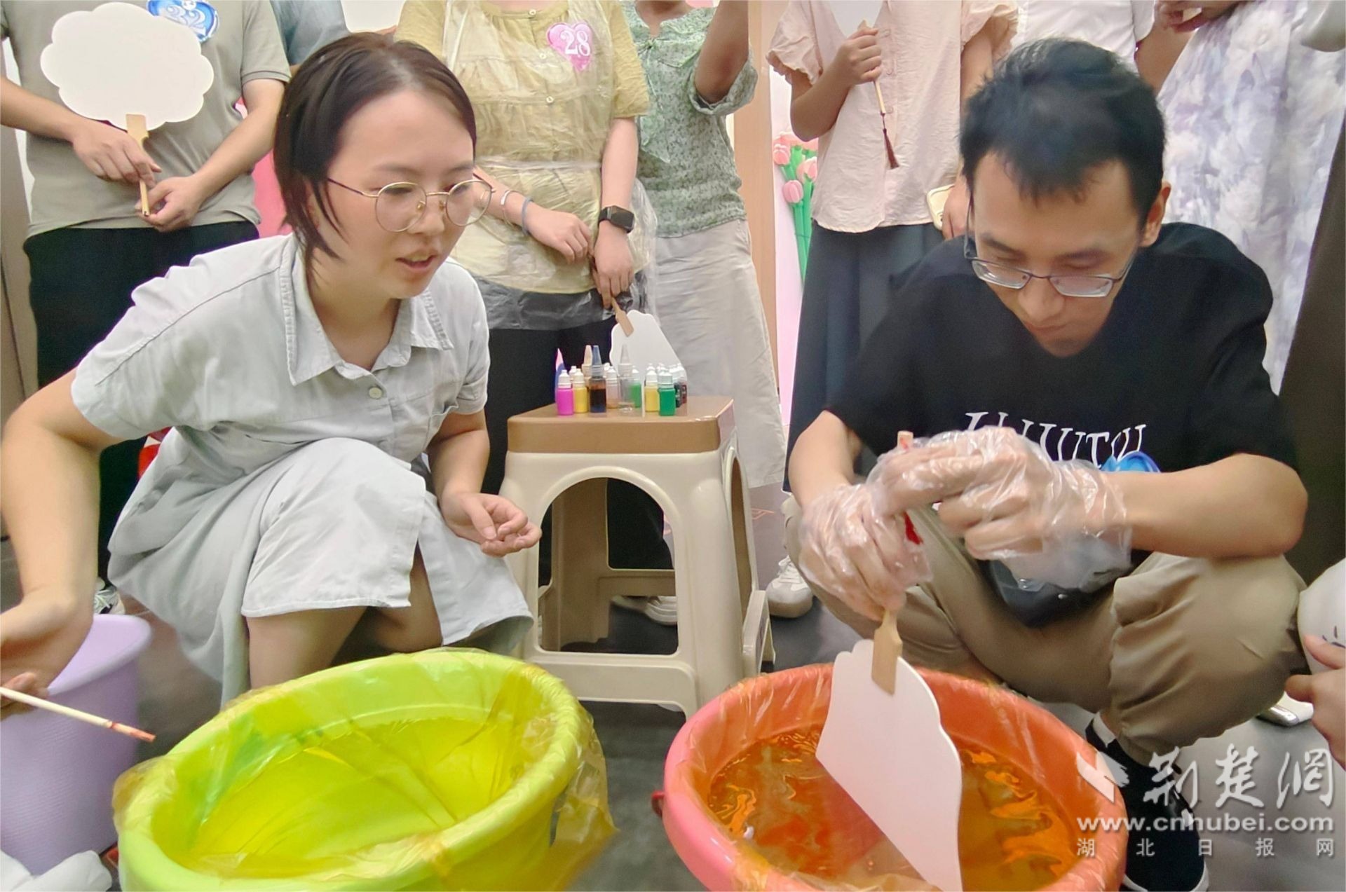 男女嘉賓相互配合制作膏雕。李夢(mèng)婷 攝