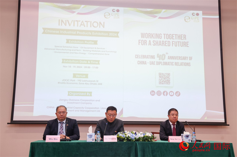 人民網(wǎng)阿布扎比8月9日電 (記者任皓宇)中阿(聯(lián)酋)產(chǎn)能合作示范園2024年中國(guó)工業(yè)品展會(huì)新聞發(fā)布會(huì)9日在阿布扎比舉行。