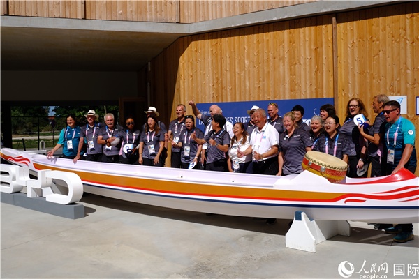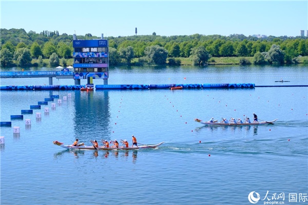 8月10日,中國競技龍舟在馬恩河畔韋爾航海體育場進(jìn)行展示表演。人民網(wǎng)記者 尚凱元攝