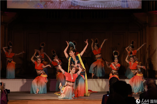 愛丁堡藝術(shù)節(jié)第四屆中國文化嘉年華上的敦煌舞《神秘和諧》。人民網(wǎng)記者 邢雪攝