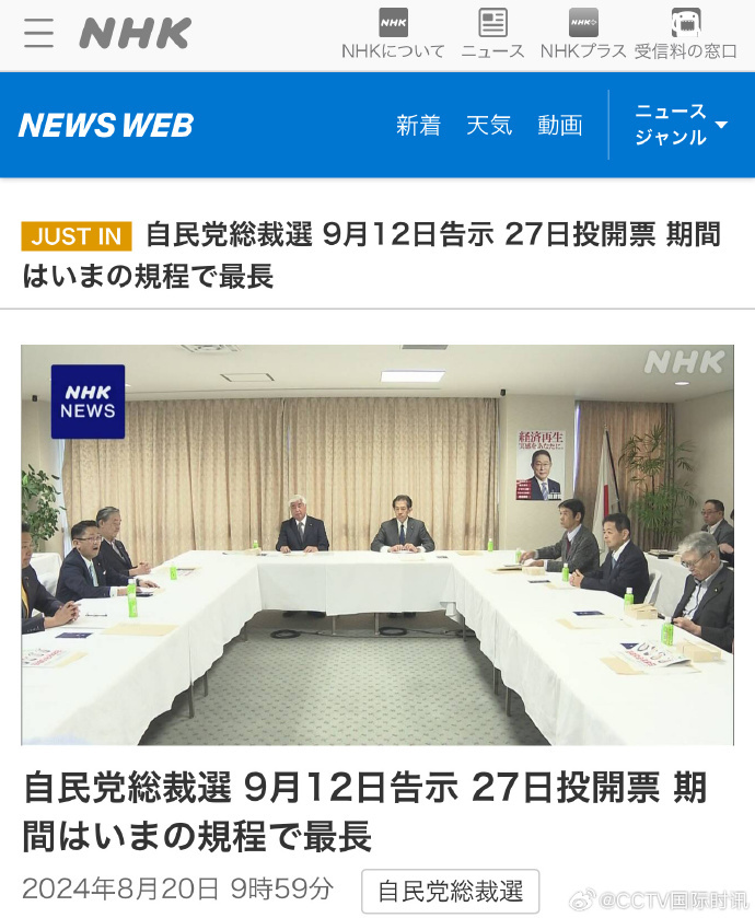 據(jù)日本媒體報道,日本執(zhí)政黨自民黨總裁選舉管理委員會今天(8月20日)舉行會議,決定于9月12日發(fā)布自民黨總裁選舉公告,9月27日進行選舉投票和計票。