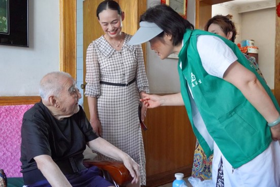盡管天空細(xì)雨綿綿,醫(yī)護(hù)人員們和梨園街道人大工作委員會(huì)主任楊瓊一起,攜帶醫(yī)療設(shè)備,深入社區(qū)居民家中,為行動(dòng)不便的高齡老人提供上門醫(yī)療服務(wù)。接下來的一周,他們將延續(xù)這份關(guān)愛,將健康與清涼送進(jìn)千家萬戶。