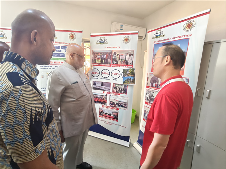 坦桑尼亞桑給巴爾衛(wèi)生部部長馬茲伊參觀科普室。專家組供圖