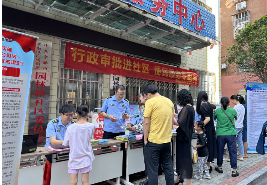 8月21日,孝南區(qū)市場監(jiān)督管理局為優(yōu)化孝南區(qū)營商環(huán)境,創(chuàng)新行政審批服務理念,在孝南區(qū)城區(qū)四街及經(jīng)濟開發(fā)區(qū)開展“流動審批”活動,同時就新《公司法》和個體工商戶分型分類政策開展大范圍宣傳。為讓群眾更直觀了解相關(guān)惠企政策,孝南區(qū)市場監(jiān)督管理局制作了宣傳展板、活動橫幅、宣傳冊等相關(guān)資料。本次活動共發(fā)放宣傳資料500余份,現(xiàn)場答疑260余人次,現(xiàn)場辦理登記業(yè)務20余件,受到現(xiàn)場群眾好評。