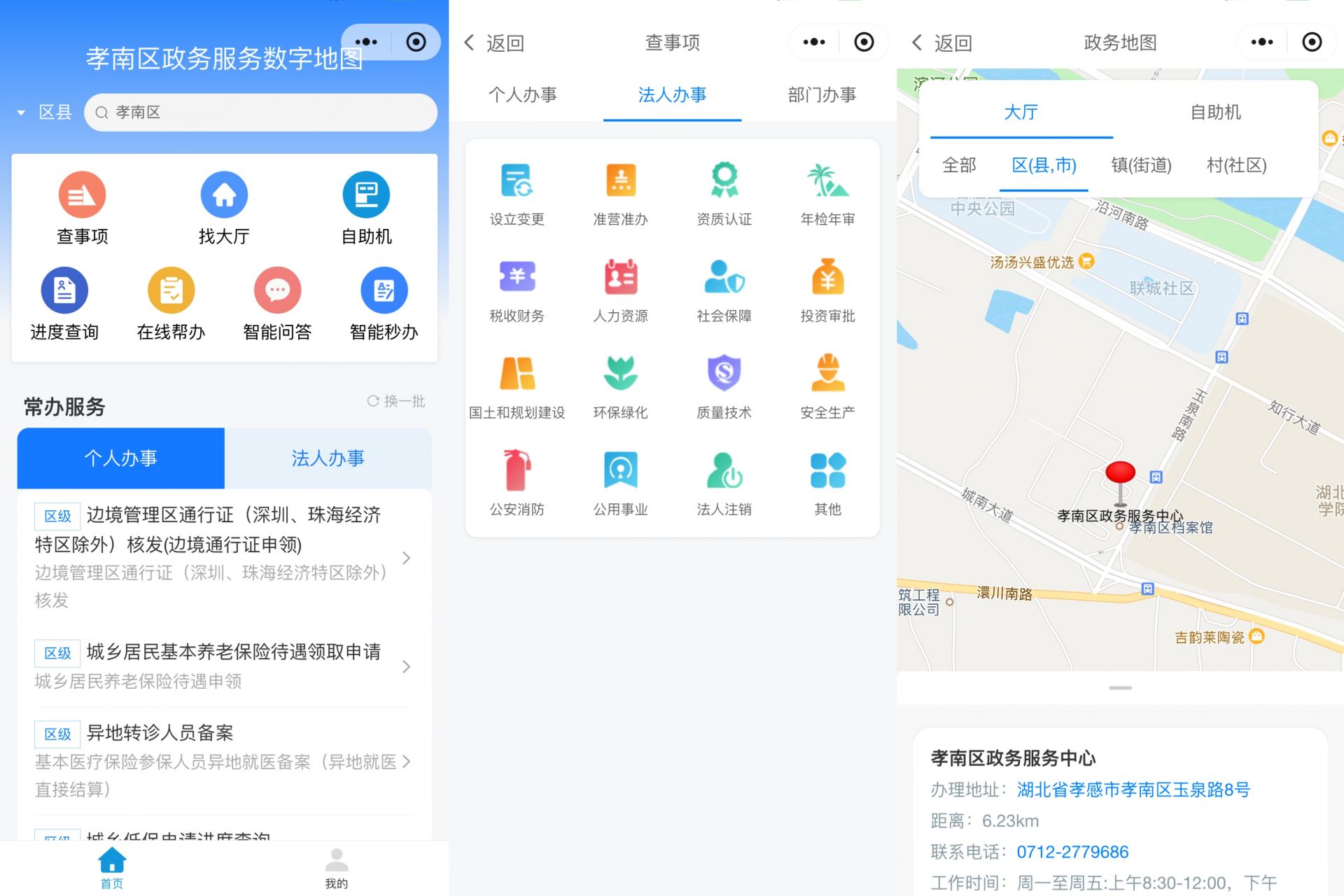 “孝南區(qū)政務(wù)服務(wù)數(shù)字地圖”界面