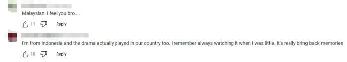 “(我是)馬來(lái)西亞人。兄弟我懂你?!薄拔襾?lái)自印度尼西亞,這部劇也在我們國(guó)家播出過(guò)。我記得小時(shí)候經(jīng)常看。這真的勾起了很多回憶?!?/p>