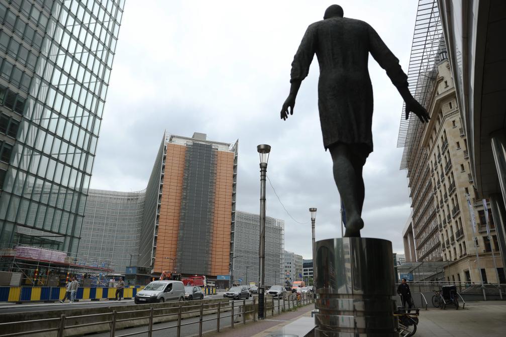 6月3日,在比利時布魯塞爾,車輛駛過歐盟委員會大樓。新華社記者趙丁喆攝