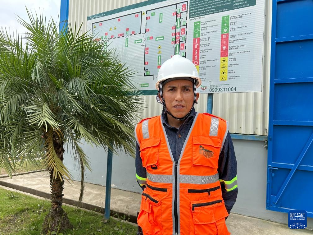 8月16日,在厄瓜多爾通代梅米拉多銅礦維修車間外,車間副主任阿方索·希門尼斯接受新華社記者采訪。 新華社記者 廖思維 攝