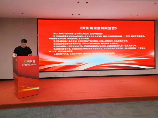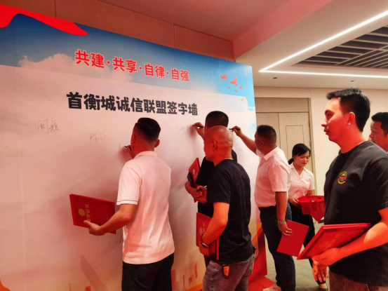誠信聯(lián)盟啟動儀式活動現(xiàn)場,宣讀了《首衡城誠信聯(lián)盟實施方案》,通過了《首衡城誠信聯(lián)盟章程》《首衡城誠信共同宣言》,入駐商戶簽訂了《誠信經(jīng)營承諾書》,參會領(lǐng)導(dǎo)為獲證商戶頒發(fā)了《首衡城誠信聯(lián)盟入駐企業(yè)證書》。