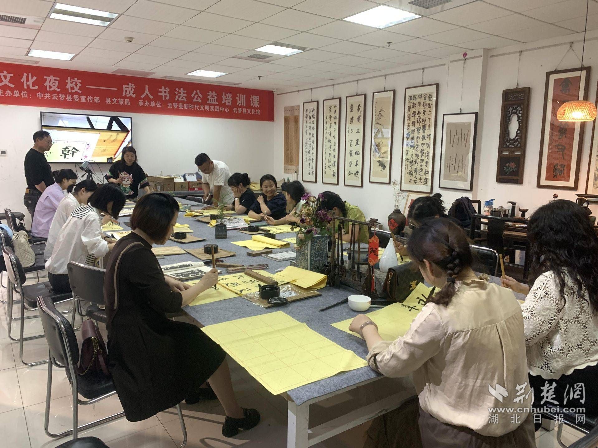 文化夜校里不少市民前來學習書法。