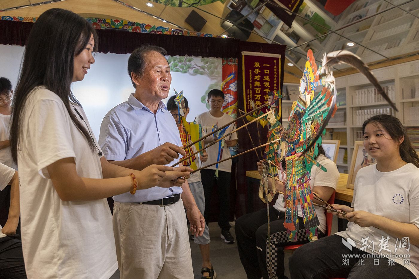 國家級非遺傳承人秦禮剛表演皮影。