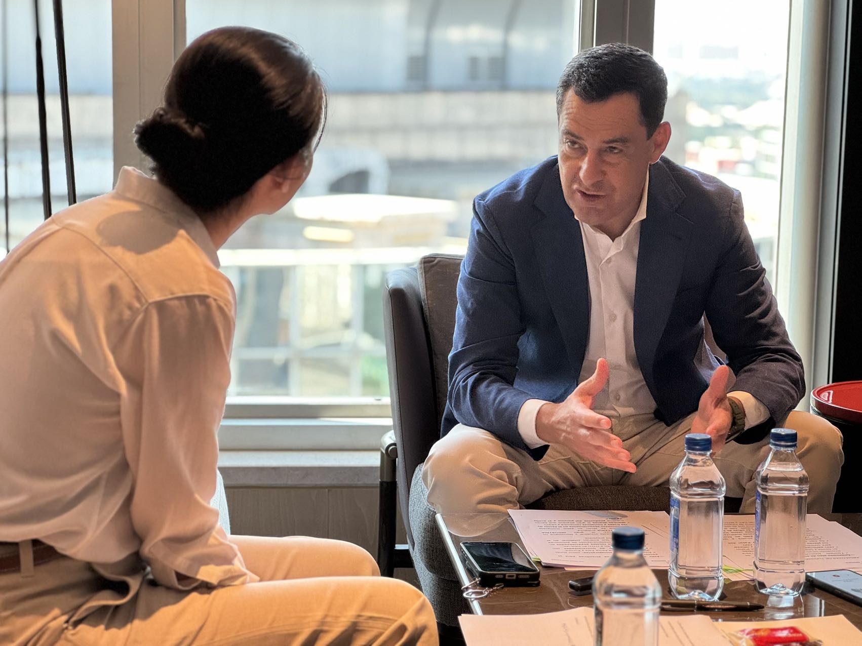 西班牙安達(dá)盧西亞自治區(qū)主席莫雷諾接受人民網(wǎng)專訪。圖片由安達(dá)盧西亞自治區(qū)新聞局局長(zhǎng)哈維爾·薩拉斯·拉莫斯拍攝