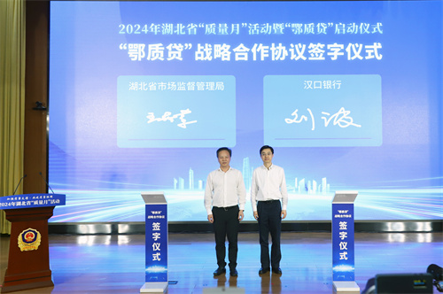 儀式上,湖北省市場(chǎng)監(jiān)督管理局黨組書記、局長(zhǎng)王世榮宣布2024年湖北省質(zhì)量月活動(dòng)暨“鄂質(zhì)貸”正式啟動(dòng),湖北省市場(chǎng)監(jiān)督管理局黨組成員、副局長(zhǎng)王勤發(fā)布《2023湖北質(zhì)量報(bào)告》白皮書(以下簡(jiǎn)稱“白皮書”),省市場(chǎng)監(jiān)管局與漢口銀行簽訂了“鄂質(zhì)貸”戰(zhàn)略合作協(xié)議。