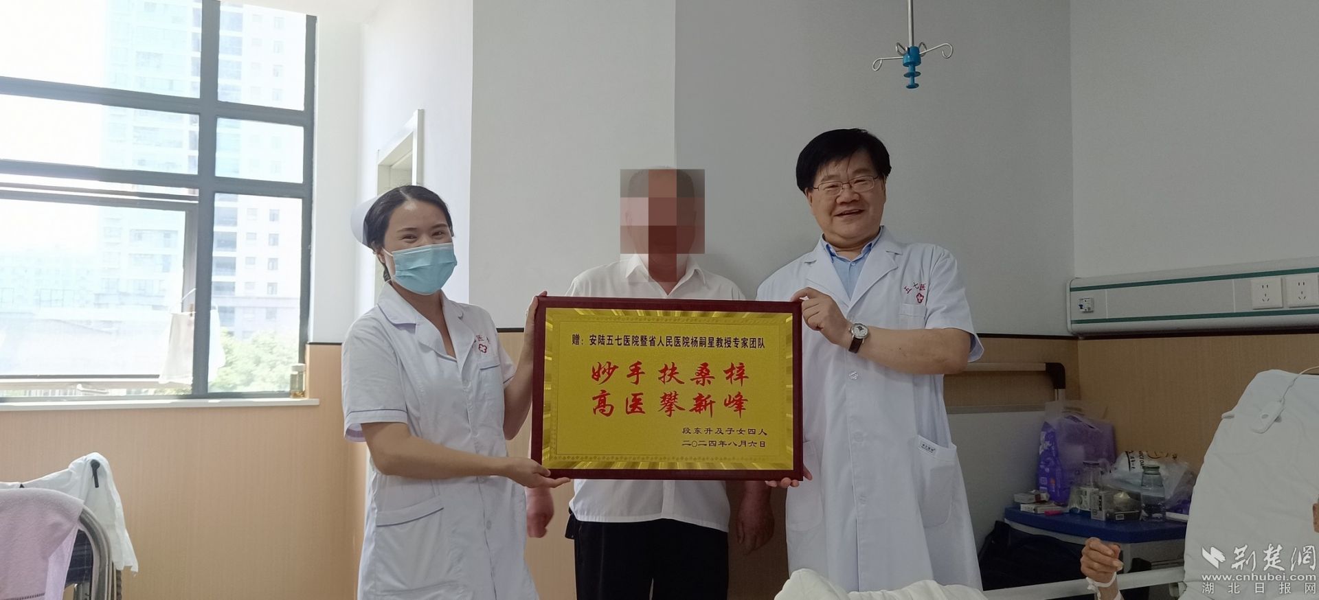 術(shù)后,段爺爺恢復(fù)良好,沒有出現(xiàn)任何并發(fā)癥,排尿功能得到顯著改善。出院時(shí),段爺爺及其子女特地贈(zèng)送牌匾給楊嗣星教授及安陸五七醫(yī)院,以此表達(dá)他們對(duì)醫(yī)療團(tuán)隊(duì)精湛醫(yī)術(shù)與貼心關(guān)懷的感激之情。